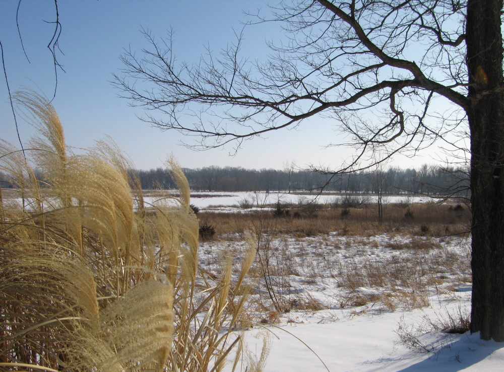 I started out here yesterday alongside the southernmost reaches of Shelton Marsh in perfect clear crisp snowy silence, then headed down the Cinder Path to see how far I'd get before deciding to turn back.