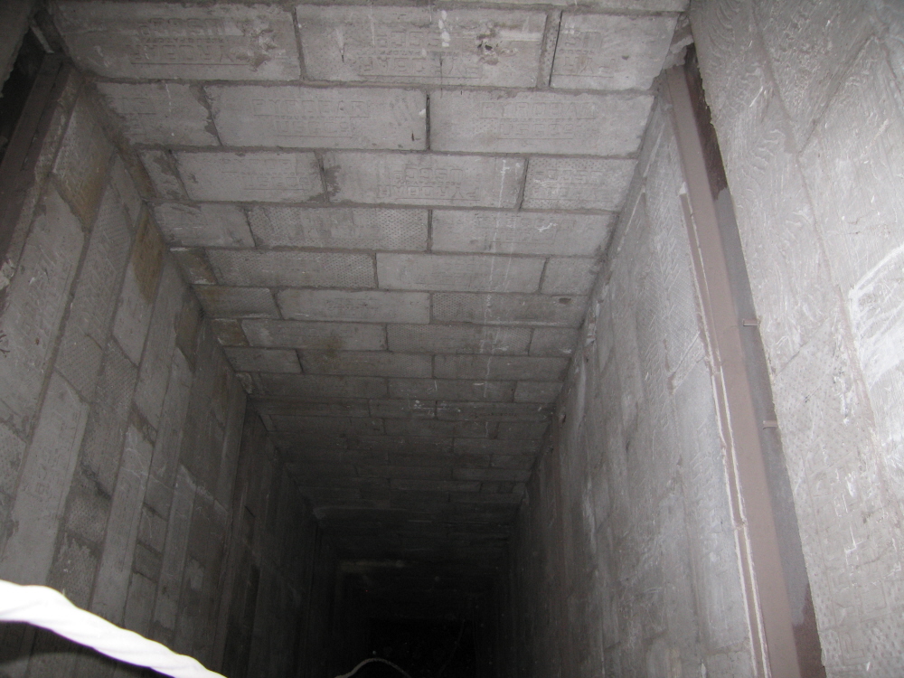 Here's a view from the fourth floor down the now-empty elevator shaft. This shaft will be reused, too, with insesrtion of a new elevator car and mechanicals. Even the shaft topper, always a familiar feature of the Charitone roofline, will be reinstalled in an effort to make the hotel looks as nearly as possible as it did when constructed.