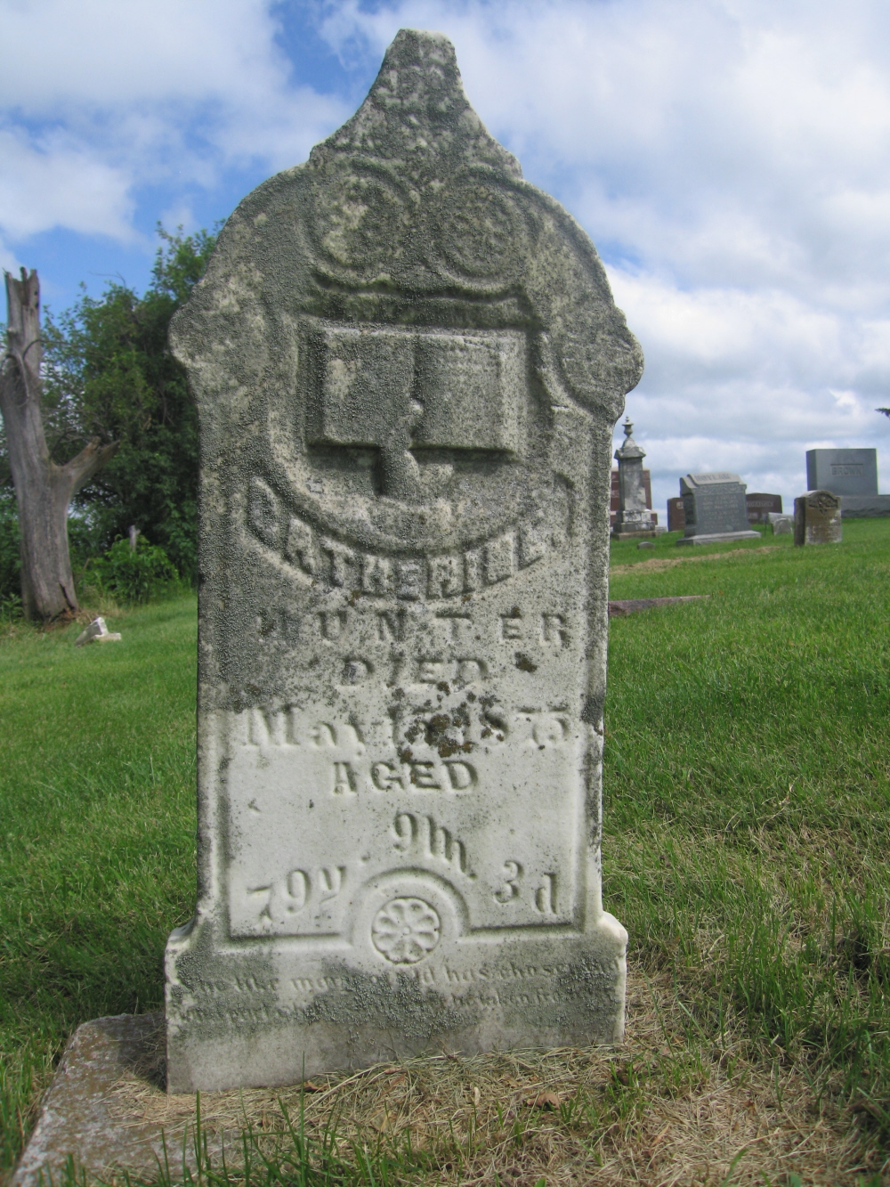 It does seem fairly certain that Catherine Hunter is not buried alone on the Elias Hunter lot, however. She and Elias were among the nine children of Alexander and Mary (Best) Hunter, who lived and died in Westmoreland County, Pennsylvania, Mary on Nov. 24, 1844, and Alexander, on April 30, 1852.